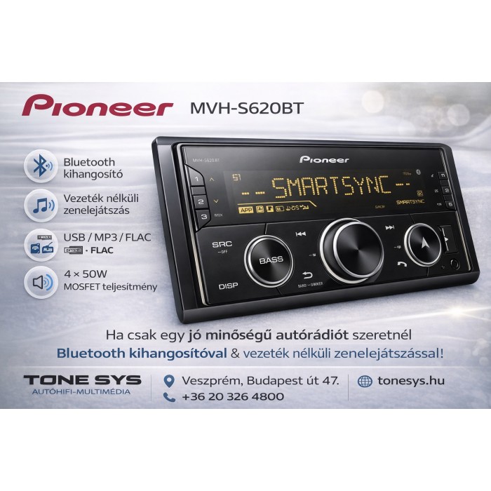 A Bluetooth-kapcsolat lehetővé teszi a biztonságos és kényelmes kihangosítást, valamint vezeték nélküli zene streamelést okostelefonjáról. A Pioneer egyedi Advanced Sound Retriever technológiájának köszönhetően a hangminőség a lehető legközelebb áll az eredeti felvételhez. Két Bluetooth telefont is csatlakoztathat egyszerre.