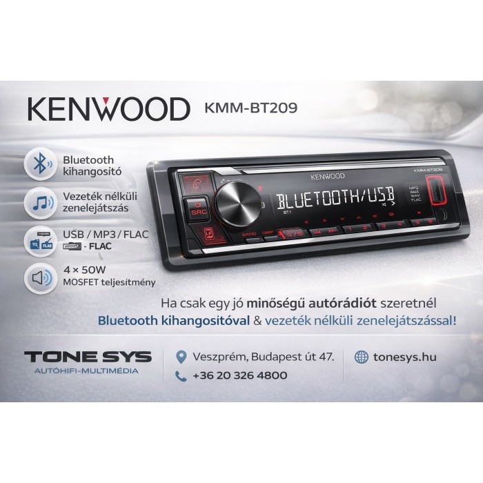 Kenwood KMM-BT209 autórádió kihangosítóval