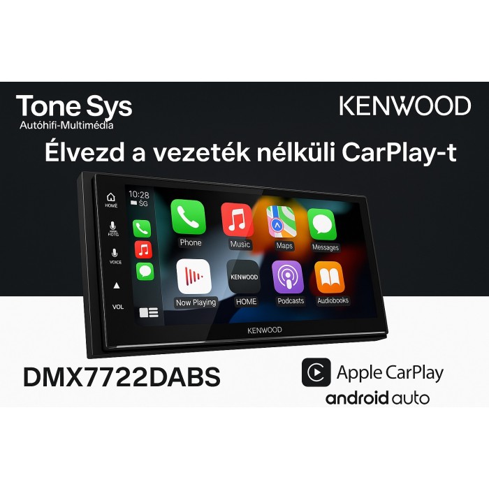 Az okostelefon és a DMX7722DABS vezeték nélküli csatlakoztatásával a vezetési idő szórakoztatóbb és kényelmesebb lesz: A biztonságos, intelligens és átfogó vezérlés az Apple CarPlay™ & Android Auto™ és az USB tükrözés segítségével lehetővé teszi Android okostelefonjának megjelenítését és vezérlését a KENWOOD vevőegység képernyőjén. Ezenkívül élvezze az optimális hangteljesítményt a 13 sávos grafikus EQ-val és az időbeállítással, valamint az opcionális tolatókamera növeli a biztonságot, miközben biztonsági másolatot készít és figyel a jármű mögött. A beépített, állítható parkolási irányelvek tovább növelik a hatékonyságát.