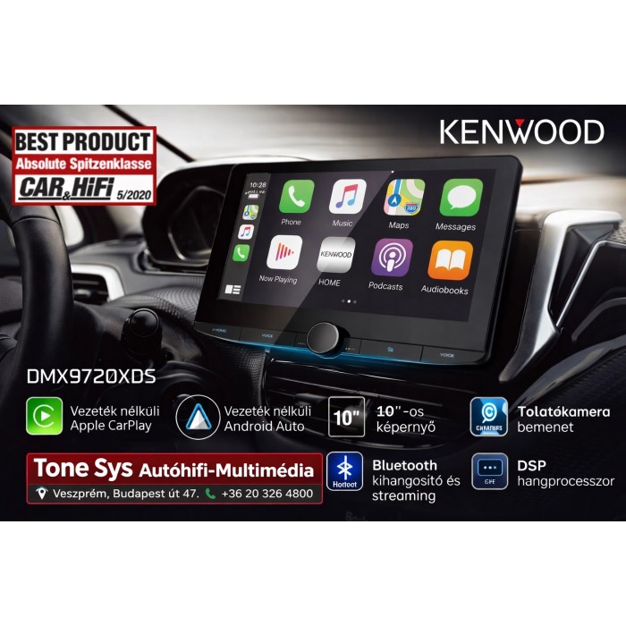 Mechanika nélküli prémium készülék, 10,1” kapacitív érintőképernyő, made for iPod/iPhone, Android Auto / Apple CarPlay / Spotify App Link (iPhone & Android), Bluetooth kihangosító és zenelejétszó, USB 1,5A töltőáram, 50W x 4 (MOSFET), 3 RCA (4,0V), 13 sávos EQ, DSP & időkorrekció (DTA), LPF & HPF, keresztváltó, hátsó AV be-kimenet, tolatókamera bemenet segédvonalakkal, magyar nyelvű menü, infraszem, tanítható multikormány adapter.